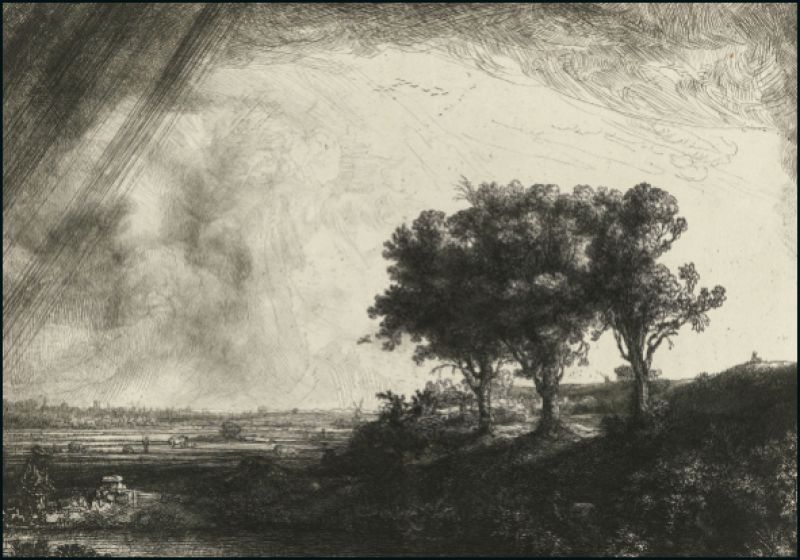 Postcard: De drie bomen, Rembrandt van Rijn, Rijksmuseum Amsterdam