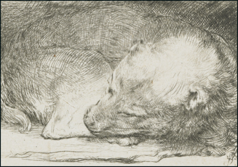 Postcard: Slapend hondje, Rembrandt van Rijn, Rijksmuseum Amsterdam