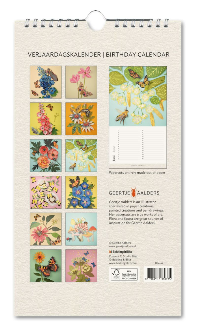 Never forget a birthday, anniversary or other special occasions again with a Bekking and Blitz birthday calendar. Every month features high quality prints of your favourite illustrations or paintings. The calendar features a hook so you can hang it wherever you want.