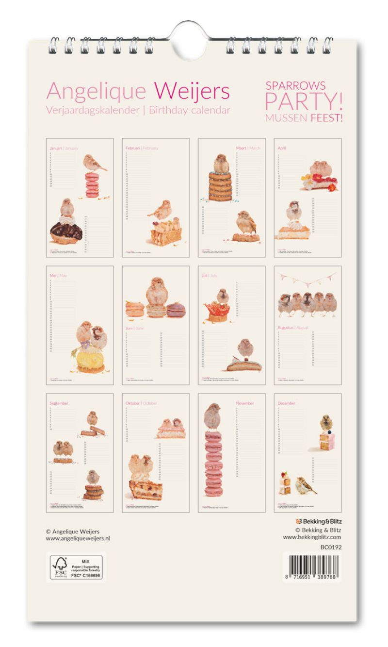 About Birthday calendar: Sparrows party, Angelique Weijers